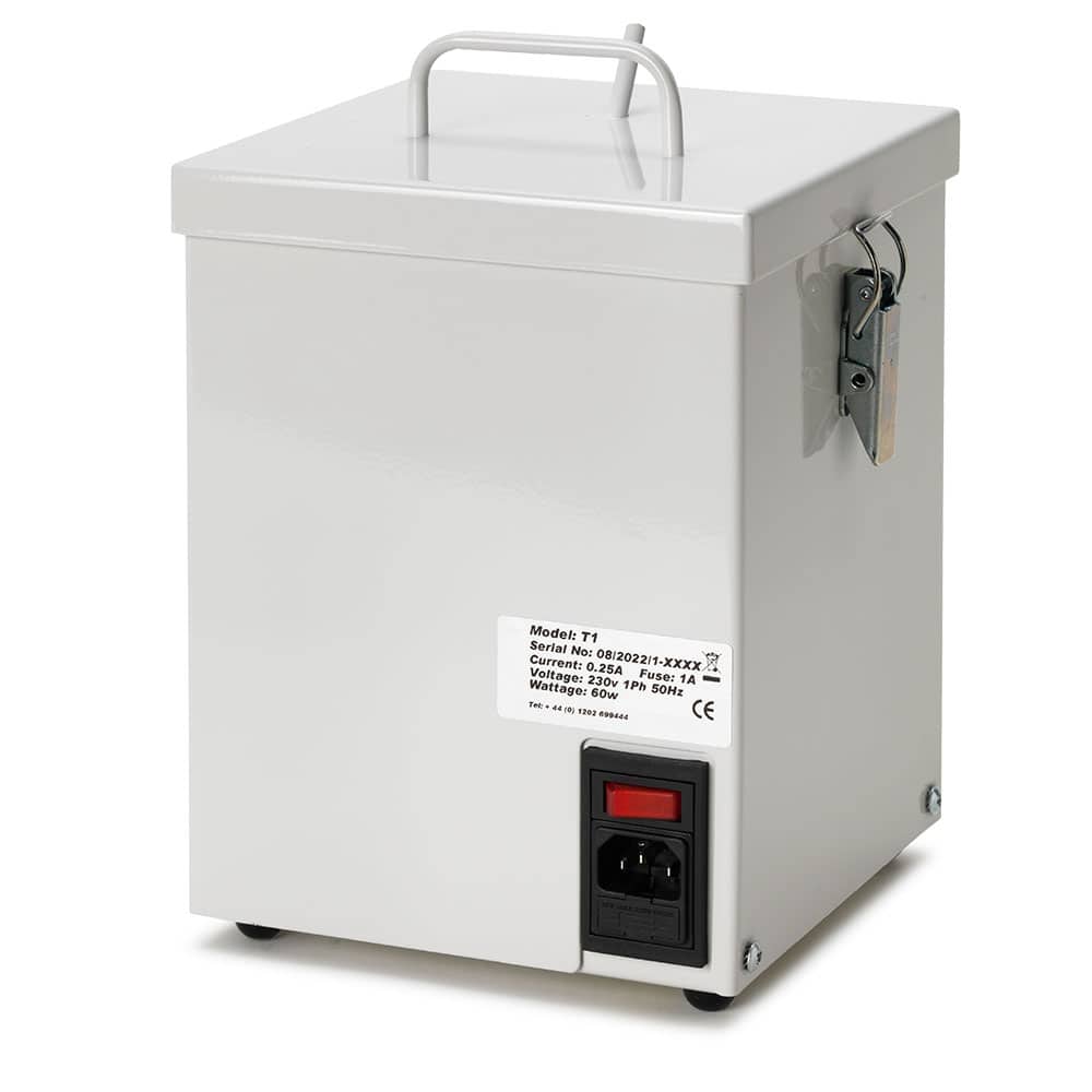 The T 1 extraction system is designed to filter fumes and debris from a single-hand soldering application. Using small bore hoses and attachments, this portable system is ideal for applications that require close proximity, such as microextraction.